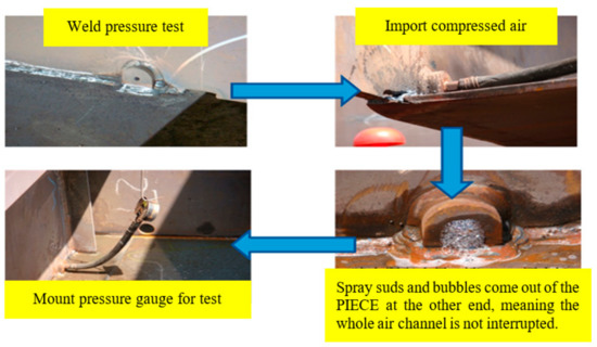 Most studies focus on the technical enhancement. By a different point of view, this study follows the hull structure of rules for the Construction and Classification of Steel Ships [] issued by the China Corporation Register of Shipping. This research combines codes, operating standards, pressure test plan, and an alternative scheme with management theory to improve the welding process for a fillet air test.