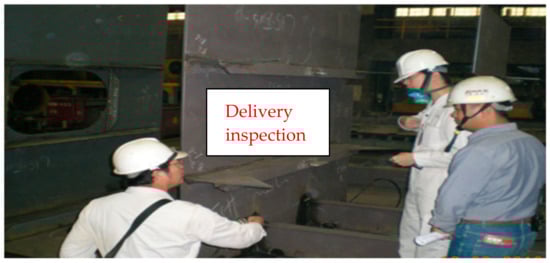 The sample company project team note that the ship structures are mostly made of carbon steel material. Without a favorable coating for protection, the seawater will accelerate oxidation corrosion []. Therefore, to upgrade the coating quality and reduce the coating damage, a complete planning is required before block hoisting; hence, all of the components and pipe fittings shall be finished before the painting stage. Ideally, the painting operation in dock is only block merging. However, the shipowner’s design modifications or control and inspection system reset sometimes leads to site operation modification, hence, influencing the coating quality.