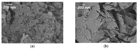 The SEM (scanning electron microscope) image of (a) laponite and (b) bentonite clay used in the experiment.