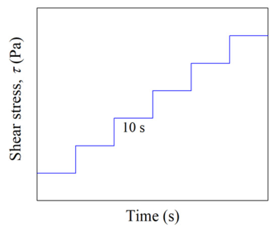 The ramp-up (step-up) shear test applied in the rheological experiment.