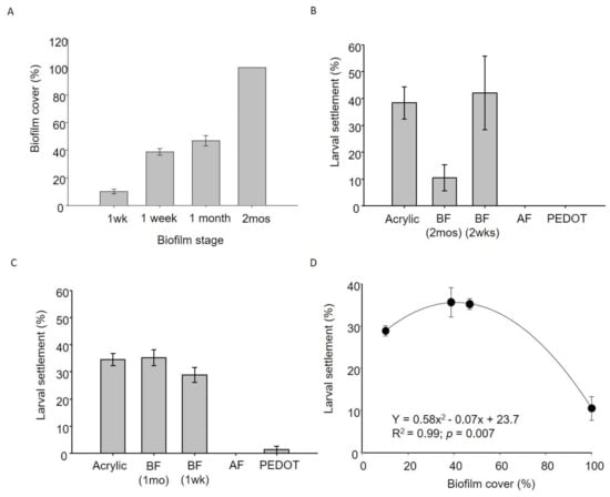 Baldanzi, S.; Vargas, I.T.; Armijo, F.; Fernández, M.; Navarrete, S.A. Experimental Assessment of a Conducting Polymer (PEDOT) and Microbial Biofilms as Deterrents and Facilitators of Macro-Biofouling: Larval Settlement of the Barnacle Notobalanus flosculus (Darwin, 1854) from Central Chile. J. Mar. Sci. Eng. 2021, 9, 82. https://doi.org/10.3390/jmse9010082