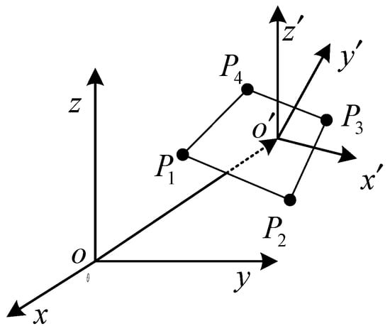 Consider two coordinate systems illustrated in Figure 2: the reference coordinate system o-xyz and the local panel coordinate system defined by the vertices 1 to 4 in the counterclockwise direction, named , , , and , respectively. The positive axis points to the exterior of the fluid.