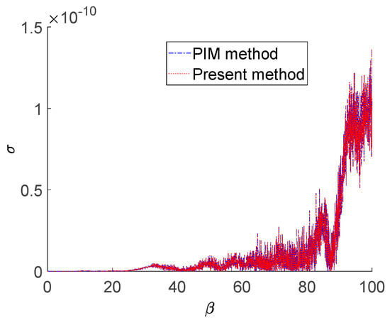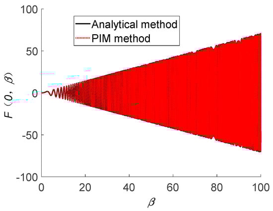 In Figure 3, the “analytical method” denotes the solutions obtained by the analytical expression for TFSGF when (presented in Equation (40)). Figure 3 shows the solutions obtained by the “PIM method”, with constant m = 50 for [].