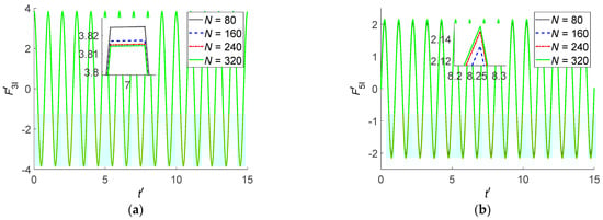 From Figure 10, the F–K forces obtained by “numerical method” and “present method” are almost the same, and the relative error between the “numerical method” and “present method” is 0.1%. The CPU time consumption for the “numerical method” is about 35.4 s, while the CPU time consumption for the “present method” is about 27.8 s. The “present method” is more efficient than the “numerical method”. The efficiency and accuracy of the “present method” can be validated.