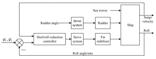 Based on the above discussion, the diagram of the heel/roll reduction control system using fin stabilizers during ship turns, as shown in Figure 4, can be obtained.