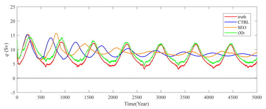 - Tardif, R.; Hakim, G.J.; Snyder, C. Coupled atmosphere-ocean data assimilation experiments with a low-order climate model. Clim. Dynam. 2014, 43, 1631–1643. [Google Scholar] [CrossRef]