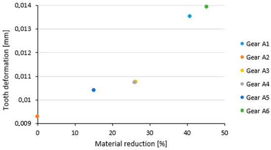 Influence of material reduction on maximum gear deformation.