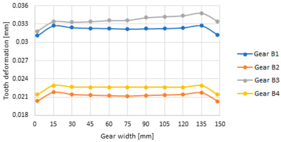 The deformation distribution along the width of the gear is also applied in Table 6.