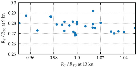 Figure 4. The general tendency is that variants which perform well at 13 kn may come with slightly higher resistance values at 9 kn. For certain designs, however, this is not necessarily the case, indicating that there would be favourable compromises.