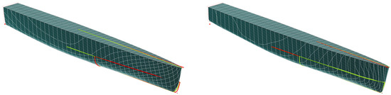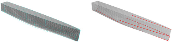 Each side of the demi-hull was modelled with just one single B-spline surface that featured a polyhedron of ten vertices in longitudinal direction (u-direction) and six vertices in vertical direction (v-direction). It should be noted that the B-spline surfaces were set up within CAESES which can also be used as system for free-form surface modelling. However, any other CAD system could have been used to establish the baseline. For the B-spline surfaces the degrees in u- and v-direction were five and three, respectively. Both the transom and the deck were modelled as ruled surfaces, following the B-spline surface’s aft edge and upper edge, respectively.
