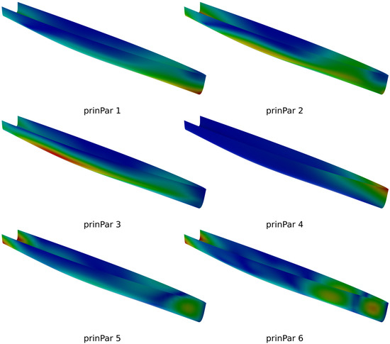 The one-stop steepest descent takes a similar approach as the Nelder–Mead simplex for the first n+1 evaluations. Basically, a gradient of the objective function is numerically determined by adding a small delta to each free variable while keeping all other free variables constant, establishing an approximation through forward differencing. As soon as the gradient is known, a line search is undertaken into the direction of anticipated improvement. In case the objective of the new variant is better than the baseline’s a second step is taken into gradient direction, e.g., by doubling the step size. Otherwise, the first step apparently has been too far and a bisection (or any other subdivision) of the distance between the baseline and the first new variant takes place. This is repeated a few times, say three to five times, until the local search is stopped, establishing a “one-stop” strategy. Alternatively, a conjugate gradient can be utilized to advance further through the design space. In principle, the one-stop steepest descent allows setting the maximum number of evaluations of the objective function upfront, namely, one evaluation for the baseline, n evaluations for the gradient approximation plus three to five evaluations during the one-dimensional line search. This means that as soon as the time needed to simulate a single variant, say the baseline, and the time available before improvements have to be realized are known, it is possible to select the maximum number of free variables—either CAD variables or principal parameters—to take into consideration. For instance, if a single variant needs one hour to simulate for hydrodynamics, a one-stop steepest descent with seven principal parameters would take eight hours before the gradient is known (one hour for the baseline and seven hours for each perturbation). With another four variants evaluated during the line search that sums up to 12 h. That would then leave another 12 h to do both the pre- and post-processing. With some eight to ten hours of pre-processing, including parametric modelling (three to four hours), undertaking the PCA (five to six hours) and coming up with a good CFD set-up (several hours while the PCA is running), that would leave about four hours to complete the job within a single day of turn-around time.