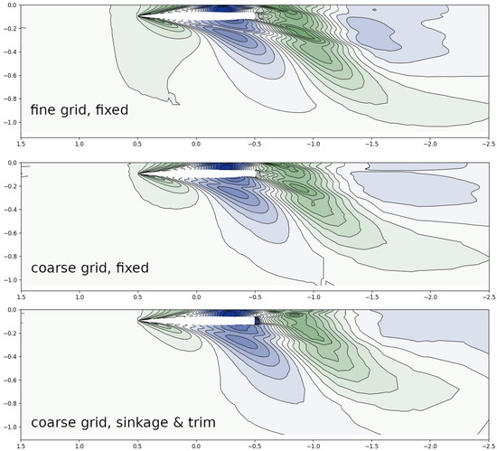 23]. Sinkage and trim is taken into account by a stepwise movement of the free surface relative to the ship. This is performed at the time steps 1500, 2500, 3500 and 4500. As an example,
