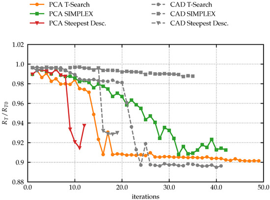 The exploitations, i.e., various optimisation runs, have been undertaken on the basis of three purely deterministic strategies, namely, a T-Search, a Nelder–Mead simplex and a one-stop steepest descent. This was done with the aim of fast turn-around times, i.e., improvements within 24 h. All three strategies perform local searches and are typically employed when quickly trying to understand the potential for improvement of a baseline without introducing major modifications and/or when fine-tuning a design.