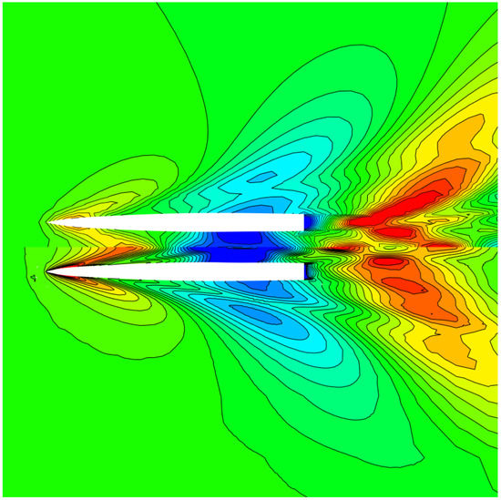 Figure 12 shows the final panel mesh on the free surface and on the hull. During the course of the computation, sinkage and trim is taken into account and at the end, the results are imported back into CAESES for visualization.