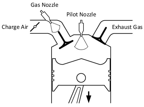 In addition, apart from DME, all the above gas fuels have higher lower calorific values (LCVs) than those of diesel; therefore, to maintain a certain engine output, the required fuel amount might be reduced if these gas fuels are used instead of diesel. This further results in a reduction in the amount of exhaust emissions generated inside the engine cylinder when gases are used as alternative fuels for diesel oil [26]. However, because gas fuels have high ignition temperatures (low cetane numbers), igniting them by direct compression is very difficult. Therefore, an external energy source, such as a spark plug or pilot diesel oil, is required to ignite gas fuels [27].