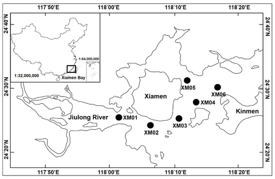 Map showing the location of the sample stations (XM01, XM02, XM03, XM04, XM05, and XM06) in Xiamen waters.