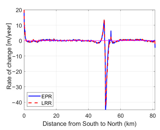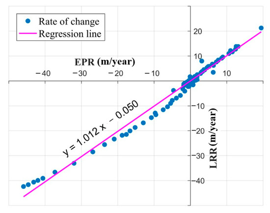 Comparison of rate of change obtained by the EPR and LRR for the Quang Nam coast.