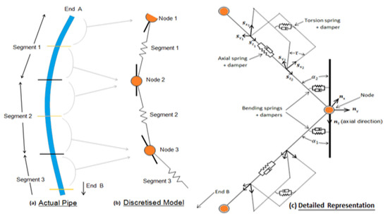 Applying the hose modelling method by O’Donoghue ([81,82,83,84]) by assuming that , , and w = z; and applying these into Equations (25) and (26), the equation of motion along the longitudinal or x-direction, yields Equation (27) and the lateral or y-direction in Equation (28):