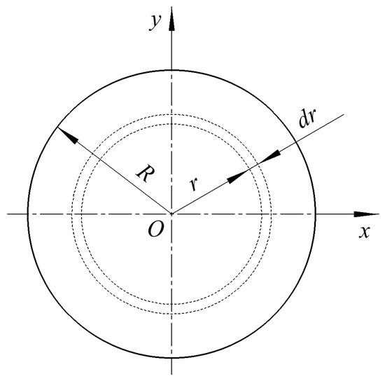 Based on Equation (15), the total flow rate of hydraulic oil in the pipeline can be derived. Figure 3 shows the pipeline cross-section. A micro-ring with radius r and width in the cross-section is taken as the research object.