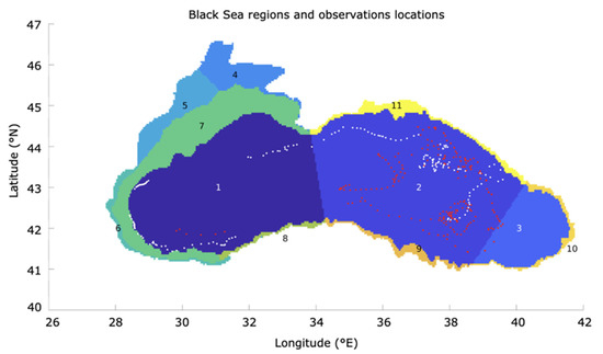 - Grégoire, M.; Vandenbulcke, L.; Capet, A. Black Sea Biogeochemical Analysis and Forecast (CMEMS Near-Real Time BLACKSEA Biogeochemistry) (Version 1) [Data Set]. Copernicus Monitoring Environment Marine Service (CMEMS). 2020. Available online: https://resources.marine.copernicus.eu/product-detail/BLKSEA_ANALYSIS_FORECAST_BIO_007_010/INFORMATION (accessed on 15 August 2021).