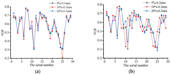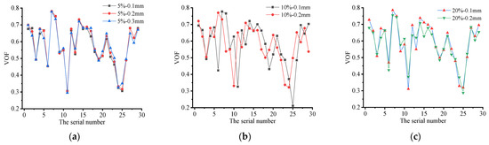 - When the content of solid particles was 5% and 10%, VOF increases with the increase in the particle diameter. When the content of solid particles was 20%, VOF decreases first and then increases with the increase in the particle diameter;