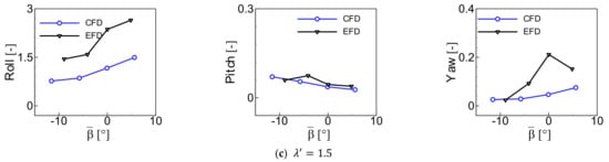 For the data post-processing, the forces, moments and ship motions directly from RANS are first transformed from the horizontal coordinate system to the ship-fixed coordinate system, as mentioned. Then, Equation (1) is used to regress the resulting data, and , , , , and can be consequently obtained. For the mean terms of two coupling motion variables, such as , the time histories of their product are calculated at first, and then the resulting time histories are regressed using Equation (1).