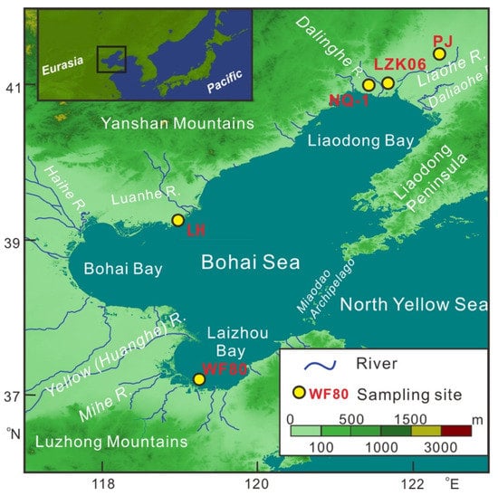- Shi, X.; Yao, Z.; Liu, Q.; Larrasoaña, J.C.; Bai, Y.; Liu, Y.; Liu, J.; Cao, P.; Li, X.; Qiao, S.; et al. Sedimentary architecture of the Bohai Sea China over the last 1 Ma and implications for sea-level changes. Earth Planet. Sci. Lett. 2016, 451, 10–21. [Google Scholar] [CrossRef]