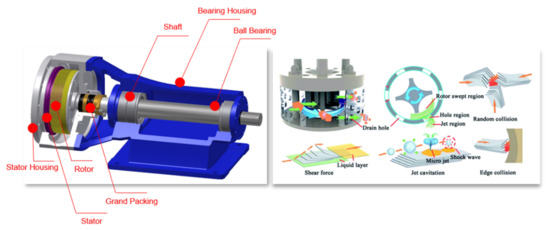 The GD is a device that uses the centrifugal force of the rotor-stator (Figure 1). Ro-tor-Stator is a set of ring-shaped tools with grooves or holes processed in the direction perpendicular to the axis. During operation, the rotor rotates at a speed of 24 m s−1, forming a mesh with the stator. When the seawater to be treated is supplied to the central part of the shaft and passes through the rotor-stator structure with strong centrifugal force, organisms are killed by high-speed physical force and water pressure. It has the following physical effects: (i) Shearing is performed by the edge of the tool in the circular space of the rotor-stator, (ii) organisms die due to the pressure change that occurs when they pass through the rotor-stator at high speed. The specifications of GD that are used in PT and FST are specified in Table 1.