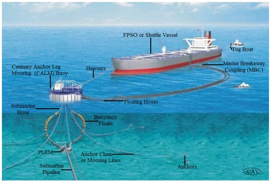 - OIL. Mooring and Offloading Systems; Offspring International Limited: Dudley, UK, 2019; Volume 2, Available online: https://www.offspringinternational.com/wp-content/uploads/2019/08/OIL-SPM-Brochure-2019-4-W.pdf (accessed on 19 August 2021).