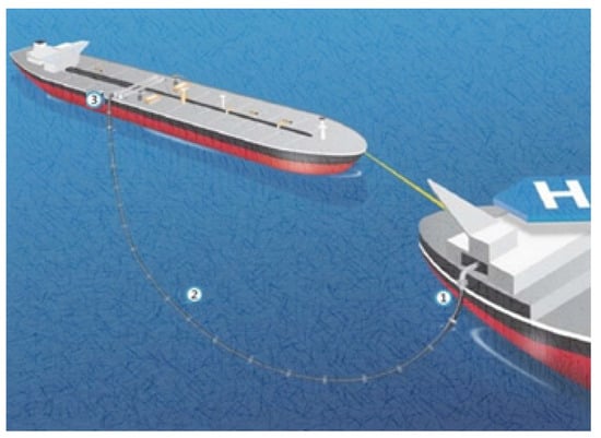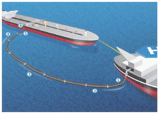 - Mauriès, B.; Lagarrigue, V.; Harmary, J. Qualification of an innovative offshore LNG tandem offloading system using cryogenic floating hoses. In Proceedings of the Offshore Mediterranean Conference and Exhibition, Ravenna, Italy, 20–22 March 2013; Paper Number: OMC-2013-097. Available online: https://www.igu.org/wp-content/uploads/2016/06/storage-5-benjamin_mauries.pdf (accessed on 1 February 2021).