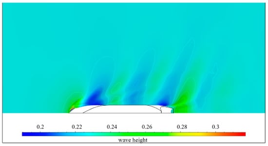 The parameters and results for the traditional icebreaker bow are shown below as example. The ship hull form parameters are shown in Table 9. The calculated water surface wave height map under static water conditions is shown in Figure 7.