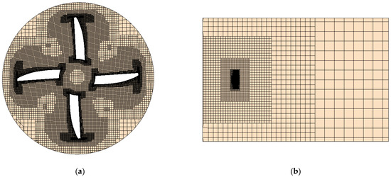 Propeller meshing diagram: (a) X section grid; (b) Y section grid.