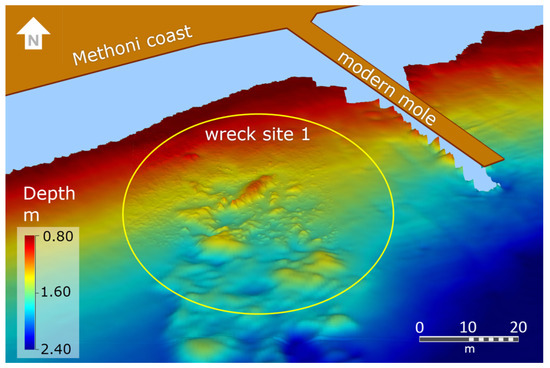 Gkionis, P.; Papatheodorou, G.; Geraga, M. The Benefits of 3D and 4D Synthesis of Marine Geophysical Datasets for Analysis and Visualisation of Shipwrecks, and for Interpretation of Physical Processes over Shipwreck Sites: A Case Study off Methoni, Greece. J. Mar. Sci. Eng. 2021, 9, 1255. https://doi.org/10.3390/jmse9111255