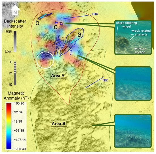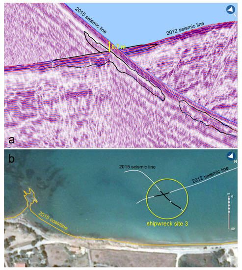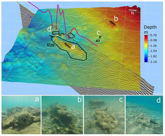 - Geraga, M.; Papatheodorou, G.; Ferentinos, G.; Fakiris, E.; Christodoulou, D.; Georgiou, N.; Dimas, X.; Iatrou, M.; Kordella, S.; Sotiropoulos, G.; et al. The study of an ancient shipwreck using marine remote sensing techniques, in Kefalonia Island (Ionian Sea), Greece. Archaeol. Marit. Mediterr. 2015, 12, 183–198. [Google Scholar]