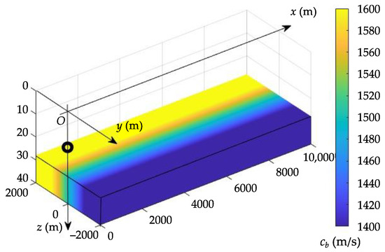 The acoustic propagation direction is primarily along the x-axis. The gradients of bottom parameters are oriented mainly along the y-axis. At an initial range, the modal excitation is proportional to the amplitude of the mode at the sound source location , , where is the source depth.