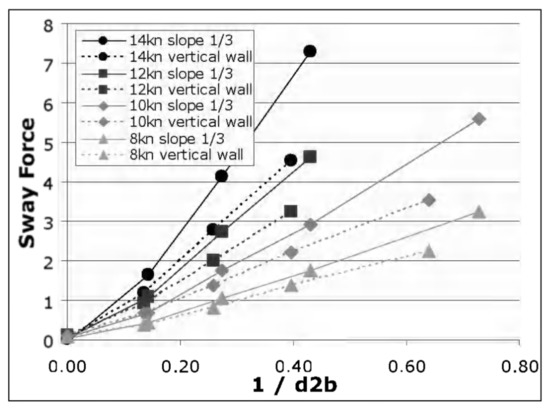 - Lataire, E.; Vantorre, M.; Laforce, E.; Eloot, K.; Delefortrie, G. Navigation in Confined Waters: Influence of Bank Characteristics on Ship-Bank Interaction. In Proceedings of the International Conference on Marine Research and Transportation, ICMRT, Naples, Italy, 28–30 June 2007. [Google Scholar]