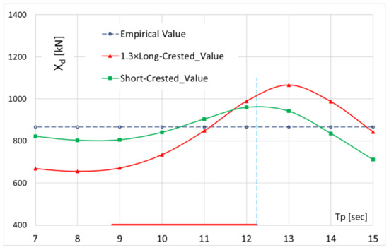 (4) The range of peak wave periods applied in the assessment is from to the greater one of or 12.0 s. For a ship with LPP > 250, = 6.0 m, this results in the range of to be [8.82, 12.25] s.
