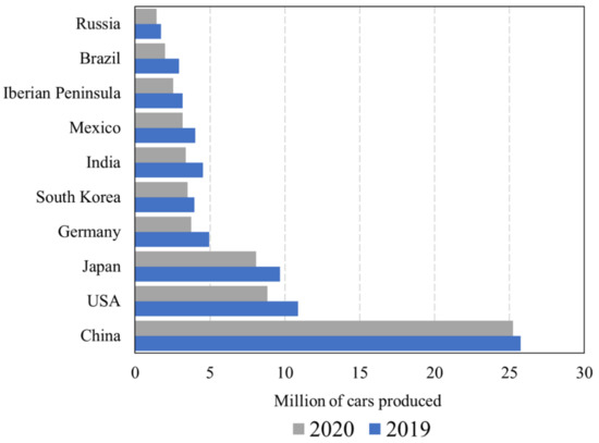 - OICA. Automotive Production Statistics 2020; International Organization of Motor Vehicle Manufacturers: Paris, France, 2021. [Google Scholar]
