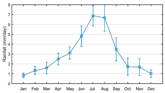 The nighttime Level 3 mapped SST data from MODIS/Aqua from 2002 to 2016 were used to diagnose SST fronts in the YB sea. Additionally, we checked that the daytime SST data got the same SST-front pattern and intensity with the nighttime SST. These SST datasets with a spatial resolution of 4 km were downloaded from the U.S. National Aeronautics and Space Administration (NASA) website (http://oceancolor.gsfc.nasa.gov, accessed on 15 June 2020). To match the chl-a data, climatological monthly mean SST data were used in this study, which was calculated averaging all data obtained for the entire period during each particular month. The monthly rainfall data in the area around the YB sea (117–129° E, 30–42° N) from 2002 to 2016 were derived from U.S. National Oceanic and Atmospheric Administration (NOAA) (https://psl.noaa.gov/data/gridded/data.cmap.html, accessed on 2 November 2021) and used in the analysis.