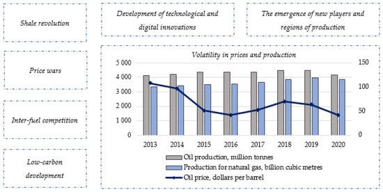 6]. The structure of the global oil and gas market is changing greatly and the competition between different types of fuels is growing under the influence of decarbonization processes and the intensive development of the renewable energy sector. As new players and production regions emerge, it causes changes in market shares and the pricing mechanism for resources, with competition growing in both traditional and new markets. To grow and prosper, the oil and gas industry needs to introduce advanced technologies and take the path of innovative upgrading.