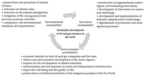 24]. The above literature review makes it clear that in the context of developing the Arctic’s oil and gas resources, sustainability, as a rule, is reduced to its environmental domain. This is explained by the high risks of environmental consequences (such as oil spills and environmental pollution) and the impossibility to react promptly due to difficult climatic conditions.