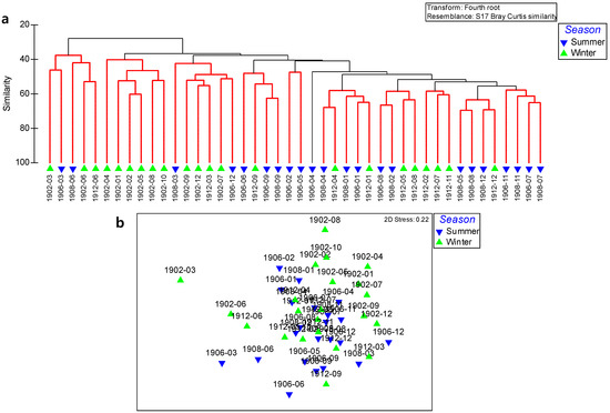 - Lambshead, P.; Platt, H.; Shaw, K. The detection of differences among assemblages of marine benthic species based on an assessment of dominance and diversity. J. Nat. Hist. 1983, 17, 859–874. [Google Scholar] [CrossRef]