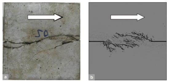 Laboratory direct shear tests with constant normal stress [9] are usually used to investigate the mechanical behavior during progressive damage of such rock bridges. The progressive damage of a rock bridge subjected to a shear load comprises four stages [10,11]: (i) pre-crack-initiation, (ii) stable crack growth, (iii) unstable crack growth, and (iv) post-peak. When a rock bridge is damaged enough to reach the volume-expansion point (the onset of stage (iii)), the growth of cracks cannot be restrained until the rock bridge ruptures, even if the imposed load remains unchanged [12]; the shear stress corresponding to the volume-expansion point (σc) is equivalent to the long-term shear strength of rock bridges [13]. Therefore, identifying the volume-expansion point is very important to assess the damage state of rock bridges and the long-term stability of coastal cliffs. Though great efforts [14,15] have been made, thus far no widely accepted identifying methods of the volume-expansion point of rock bridges under direct shear have been proposed.
