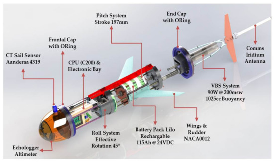 An underwater glider is a class of Autonomous Underwater Vehicle (AUV) that is guided by an operator in a boat through an umbilical cable or by a human pilot via satellite commands. Submarine gliders have multiple commercial and scientific applications. Like other instrumented equipment such as buoys, gliders are used to study the vulnerability of underwater ecosystems. Like other instrumented equipment such as buoys, gliders are used to study the vulnerability of underwater ecosystems caused by industrial, tourist, urban activity, or due to phenomena such as global warming [1]. Submarine gliders can be used in different extraction and exploration missions, in applications for measuring water quality parameters, in the oil industry, oceanography, the study of plankton and fauna, among others where human intervention is dangerous or even impossible [2,3,4,5,6,7]. For this reason, underwater gliders are very important for monitoring the ocean and new technological developments are necessary to provide robustness to the glider [8,9].