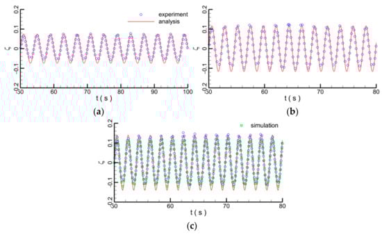 Temporal evolution for the regular waves: (a) case 1; (b) case 3; (c) case 5.