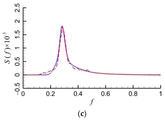 Wave energy spectrum comparison for irregular waves: (a) case 2; (b) case 4; (c) case 6.