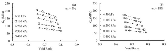- Xu, J.; Zhou, C. Experimental study of effect of wetting-drying path on small-strain shear modulus of silt. Rock Soil Mech. 2015, 36, 377–381. (In Chinese) [Google Scholar]