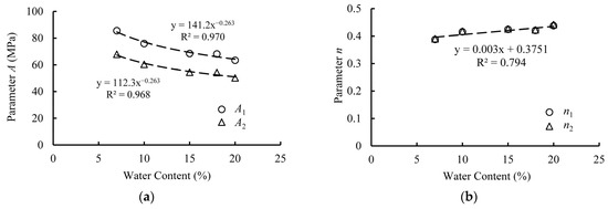 | Water Content (%) | Fitting Parameters | |||