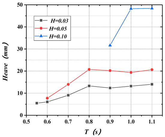 Variations of heave with period and wave height.