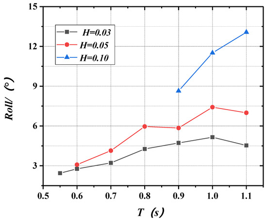 Variations of roll with period and wave height.